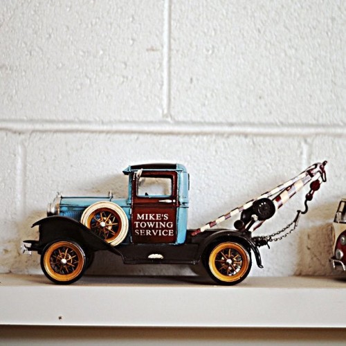 In March 1930, Ford Model A sales hit three million, and there were nine body styles available. One of them was the Ford Model A Tow Truck. Today, you can own this beautiful replica of the 1931 Ford Model A Tow Truck scale 1:12 in your home or office! Handcrafted of iron, with remarkable details such as spoke wheels, hood, headlights, fenders, and crane. A must for the collector and enthusiast! ï 100% iron frame ï Metal wheels ï Wheels roll ï Decaled insignia ï Includes seats, steering wheel, and small details on dash ï Exterior details such as the spare wheels are securely welded on ï Chains in the rear are moveable
