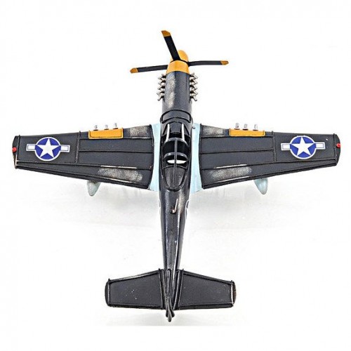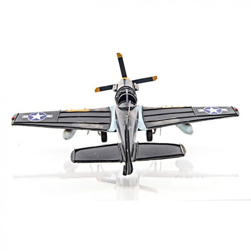 This 1943 Grey Mustang P-51 was an American long-range, single-seat fighter and fighter-bomber used during World War II, the Korean War and other conflicts. This replica model is handcrafted in iron frame with a scale of 1:40. This Grey Mustang P-51 model comes with remarkable details such as front rotor blade, wings, cockpit, and landing wheels. They are beautifully painted with the authentic WWII paint and symbols. A must have for the collector and enthusiast! ï 100% iron frame ï Metal wheels ï Metal propeller ï Wheels roll ï Propellers spin ï Decaled insignia ï Landing gear, drop fuel tank, bomb, and missiles are securely welded on