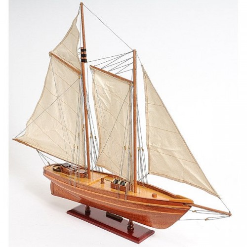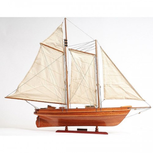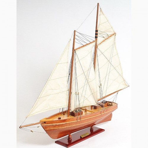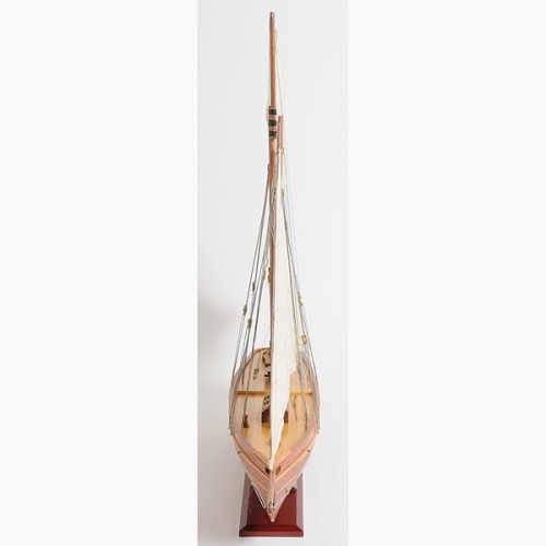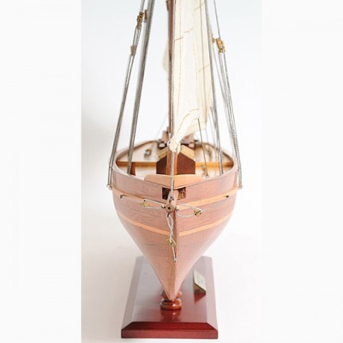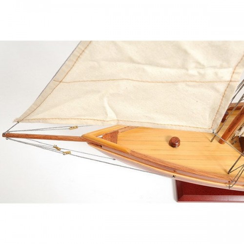 Our America Yacht model is scratched built plank on frame from cherry wood and clear varnished. This model is completely hand built by skillful and creative master craftsmen; you will be amazed at how real it looks. The shines on the hull is truly beautiful. Pure wooden ornaments such as: 3 wooden stands, 3 wooden bunkers, 3 large masts with fabric sails and detailed stitching, all rigging are matching colors, 1 metal stick in the navigation area, 1 wooden propeller, 1 long stripe around the hull of the yacht, and many more. We absolutely use no plastic parts only high quality wood and metal. Our model was built according to scale through original plans, pictures and drawings. This beautiful model is rested on a painted wooden stand with 2 crafted poles sustaining it. To enhanced value and recognition, a metal plate embedded with ìAmerica 1851î is neatly glue to the stand. The masts are fold flat down for easy shipping purposes. Semi-assembly are required.