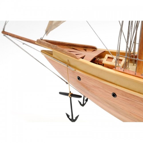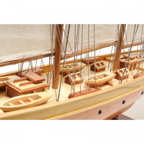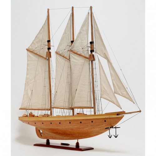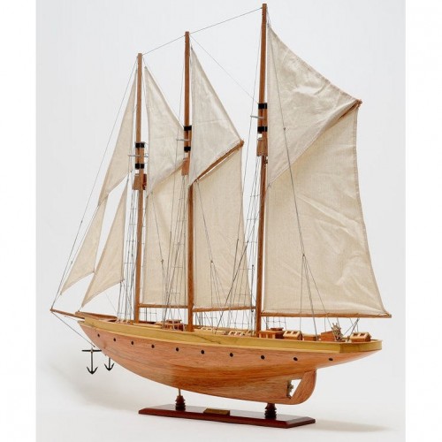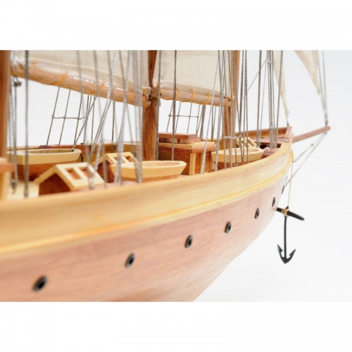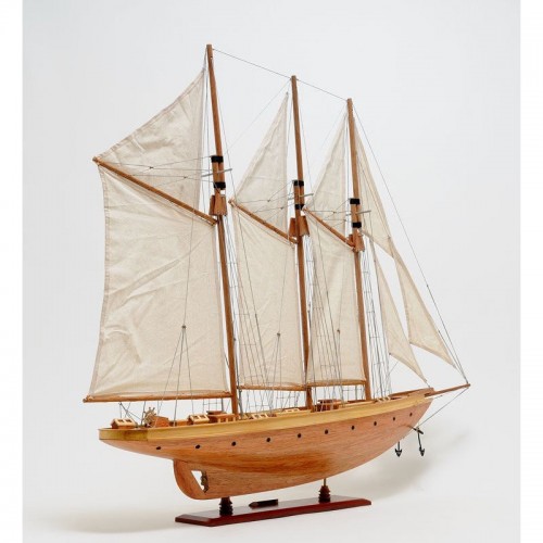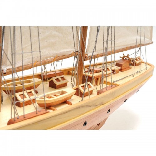 Our Atlantic Yacht model is scratched built using plank on frame from cherry wood and coated with clear varnished. The shines on the hull is truly beautiful. Pure wooden ornaments such as: wooden life boats, wooden bunkers, main masts with fabric sails and detailed stitching, all rigging are matching colors, metal anchors, metal propeller, many golden metal rings around the hull of the yacht, and many more. We absolutely use no plastic parts, only high quality wood and metal. This model is completely hand built by skillful and creative master craftsmen; you will be amazed at how real it looks. Our Atlantic Yacht model was built according to scale through original plans, pictures and drawings. The masts are fold flat down for shipping and has instruction guide how to set it up