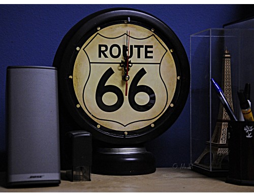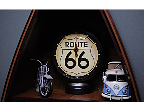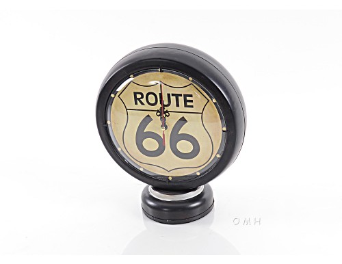 Route 66 (US 66), also known as the Will Rogers Highway and colloquially known as the Main Street of America or the Mother Road, was one of the original highways within the U.S. Highway System. This Route 66 clock adds a nostalgic accent to your home or office. Constructed of metal and hand painted to give it an antique look. The clock measures 10.5 inches in diameter and has a visible Route 66 and decorative hands to mark the time. The clock contains a quartz movement and runs on 1 AA battery (not included). This piece makes a great gift for automotive enthusiasts that is sure to be admired.