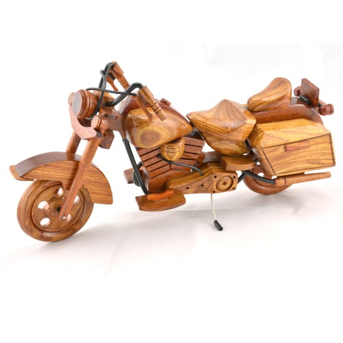 This piece of model wood art required a lot of workmanship since it was hand-crafted from many different pieces of wood to make a beautiful model motorcycle. An interesting feature of this item is that it was hand-crafted in great details, even the wheels, engine, seats, lights, handles,... were hand cut & crafted with a lot of details.....you gotta see this item in person to appreciate the beautiful workmanship and great details put in this piece.