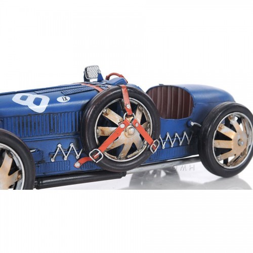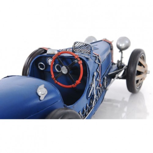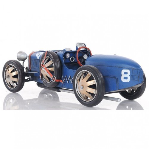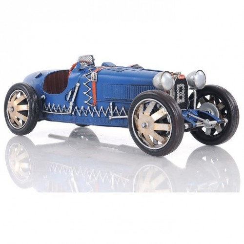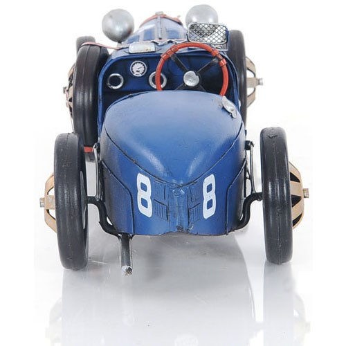 The Bugatti Type 35 was the most successful of the Bugatti racing models. It took the Grand Prix World Championship in 1926 after winning 351 races and setting 47 records in the two prior years. This automobile model is 100% iron frame with metal, rolling wheels. The decal insignia and painted details give more of an authentic look. The models have seats as well as a steering wheel and minor details on the dash. The exterior details such as the spare wheels are securely welded on. When shipped, the item is packaged with foam inserts banded to pieces of cardboard to keep them held sturdily in place. ï 100% iron frame ï Metal wheels ï Wheels roll ï Painted and decal insignia ï Includes details such as seats, steering wheel, and gas pedal. ï Exterior details are securely welded on ï 100% iron frame