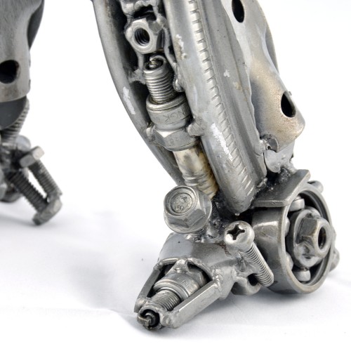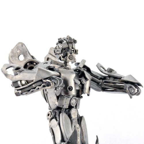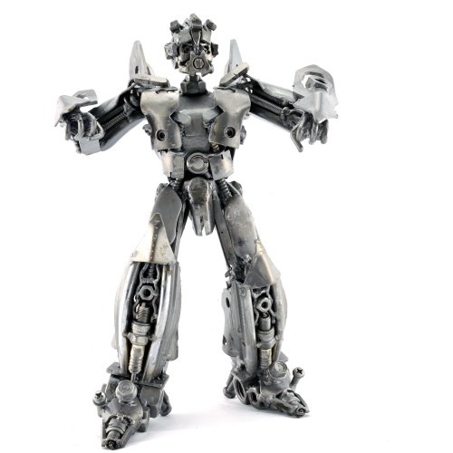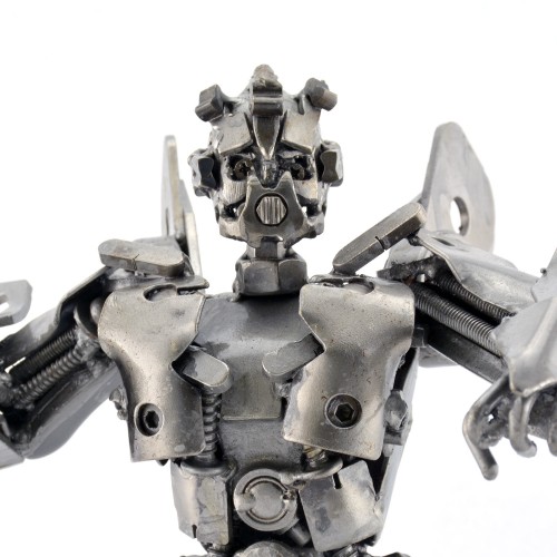 Robot Metal Sculpture look alike Bumblebee made from scrap/recycled metal and auto parts. This model is 100% hand-made by expertised craftsman. This sculpture is very solid and not easy to break because they are welded piece by piece by our professional welders. Moreover , this statue is protected by special coating ( clear lacquer ) which keeps these unique sculptures attractive for years.