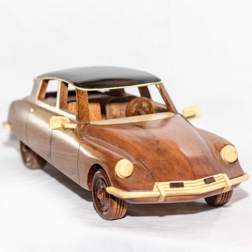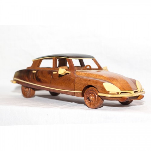 100% hand-made by expert craftsman. It takes from 20 - 24 hours to make a complete product. Handcrafted from solid mahogany, consists of: rudimentary wood processing, carve, craft and cover of polyurethane (2 coats), which keeps these unique sculptures attractive for years. Movable wheels, finely detailed molding and seam details, make this model a great gift or conservation piece.