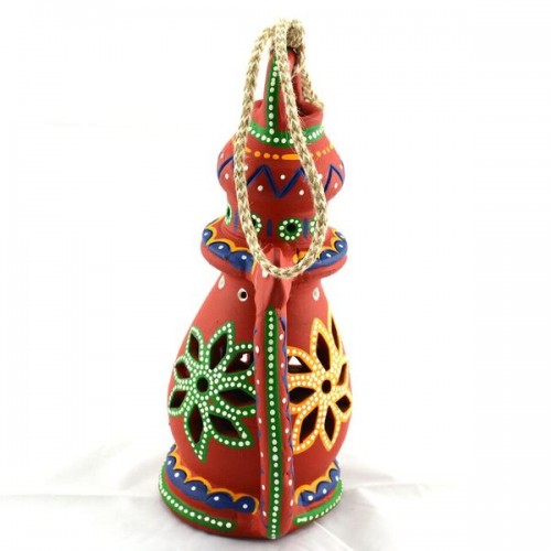 Handmade Earthen Terracotta T-Light SHanging Lanterns handpainted warli design