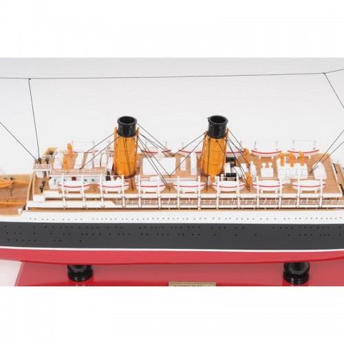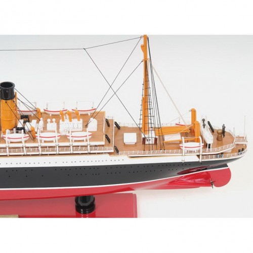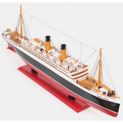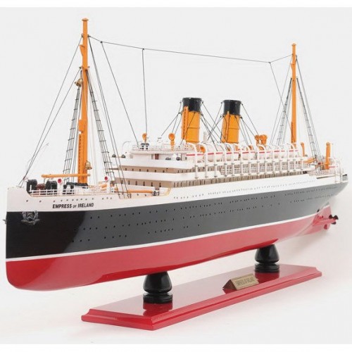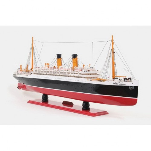 The Empress of Ireland was involved in one of the worst peacetime shipping disasters of all time. She was built in 1906 for the Canadian Pacific Railway Co... This model is fully assembled and is 100% hand built from scratch using ìplank on frameî construction method. Our master craftsmen have spent more than 75 hours to finish it. This model was painted in red, white and black, the original colors. It has magnificent details which include plank decking, metal rails, multiple life boats, davits, metal stairs, painted smoked stacks, anchors, and advanced rigging. The word Empress of Ireland is shown on the hull. The model is rested on a solid wood base with metal nameplate.