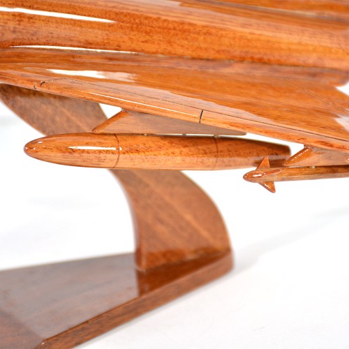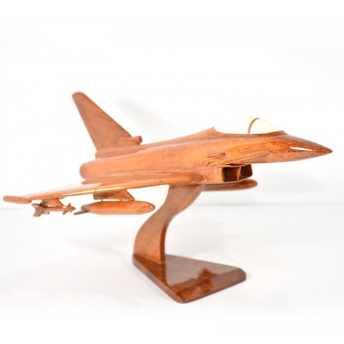 This handcrafted mahogany wood model is an extremely beautiful replica of the Eurofighter Typhoon multirole fighter jet. Model comes complete with display stand and a very nicely detailed array of armament.