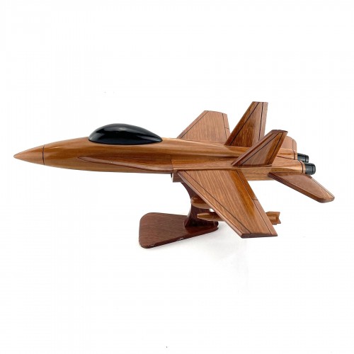 F-18 wooden model to our series of beautiful hand crafted models. The McDonnell Douglas (now Boeing) F/A-18 Hornet is a supersonic, all-weather carrier-capable multirole fighter jet, designed to dogfight and attack ground targets (F/A for Fighter/Attack). The F/A-18 was derived from the latter's YF-17 in the 1970s for use by the United States Navy and Marine Corp. The Hornet is also used by the air forces of several other nations. It has been the aerial demonstration aircraft for the U.S. Navy's Flight Demonstration Squadron, the Blue Angels, since 1986.