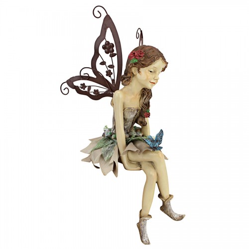 This angelic pixie statue helps you begin every day with a smile! Designed to sit atop a window ledge, garden wall or library shelf, our fawning fairy sculpture spreads her die-cut metal wings and crosses shapely legs beneath a real fabric petal skirt. Cast in quality designer resin, this exclusive fairy statue is a treasured collectible and a welcome gift for home or garden!