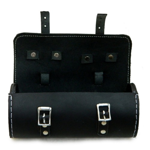 Leather Vintage Black Saddle Bag, Round Tool Bag 100% Genuine Leather, Nicely Handcrafted Genuine Leather Black Round Tool Bag Inner Length 6.5 inch Inner Depth 2.75 inch