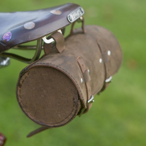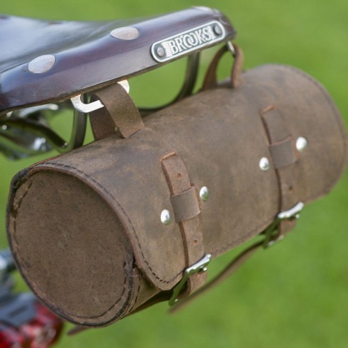 Genuine Leather Schwinn Bicycle Round Saddle Bag Utility Tool Bag - Vinatge brown