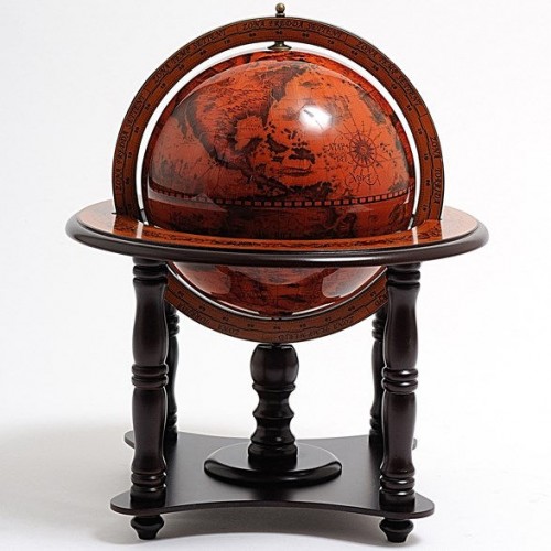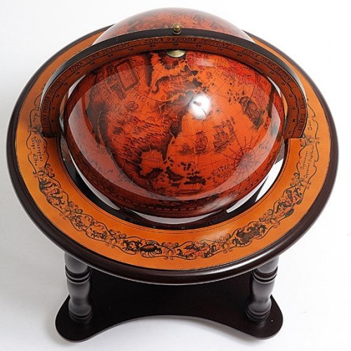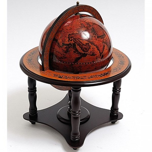 This is a beautiful globe with a 8 3/4 inches diameter. It is quite appealing when featuring an old world map on its surface. Come with a nice 4-legged wood stand, this turn-able globe will make a fine gift or decoration for your home or office! It requires some light assembly with instruction included.