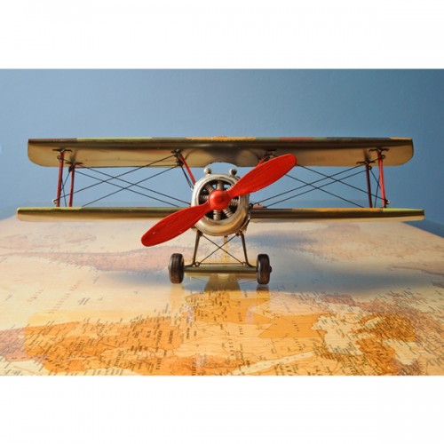 Fly back in time with this 1916 Sopwith Camel, a British First World War single seat biplane fighter introduced on the Western Front in 1917. It's handcrafted in iron frame with a scale of 1:20. This Sopwith Camel model comes with remarkable details such as front rotor blade, wings, and landing wheels and are beautifully painted with the authentic WWI paint and symbols. A must have for the collector and enthusiast.