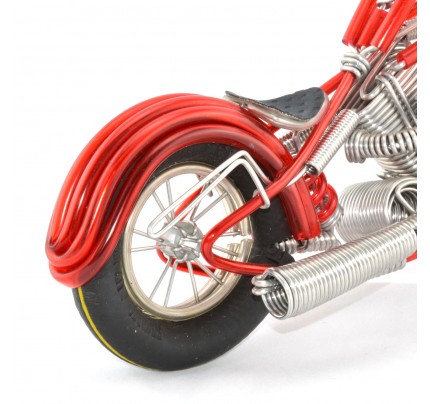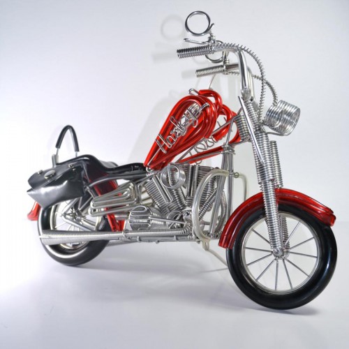 Handmade motorcycle Harley replica. That made from aluminium coil wire with red rubber tube and black rubber wheels. They would make a great gift or add in your collection