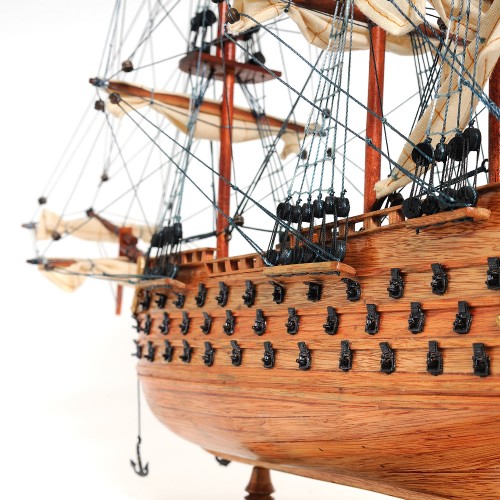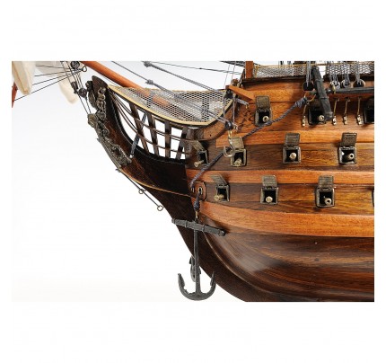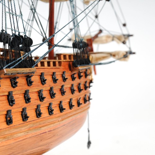 There’s also a wooden rudder to help the ship maneuver in the right direction. An attached wooden stand with a nameplate engraved “HMS Victory 1805” is standard on this model. Our model was built according to scale through original plans, pictures and drawings. We absolutely use no plastic parts only the highest quality wood and metal parts. This model is carefully secure and packed inside a wooden crate for easy shipping purposes. Our HMS Victory model comes fully-assembled and ready to be display.