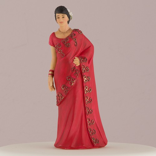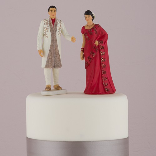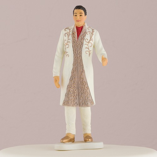 Bedecked in a beautiful and ornate red sari, our Traditional Indian Bride Figurine is a gorgeous addition to your wedding. With her traditional bindi and white hair flower, she mixes modern notions and traditional elements. Wearing traditional wedding attire, this groom is ready to stand tall atop your wedding cake or adorn a display. With a beautiful combination of gold and ivory, he's the perfect pair for another of our "Mix and Match" figurines.