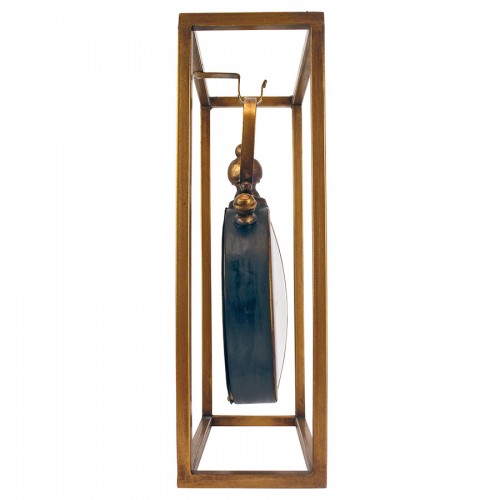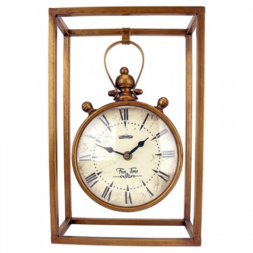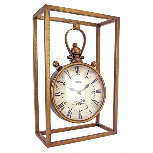 Modern workings meet industrial age style in this Design Toscano urbanely decorative clock that lends an uptown distinction to most any decor. Boasting bold Roman numerals, ebony metal hands and 6½" diameter clock face, it's a unique piece smartly suspended from a brass-hued metal box cage. The modern quartz movement accepts your single AA battery.