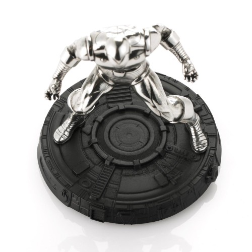 The nostalgic Invincible sculpture harks back to the Silver Age of comics, a time of straightforward stories, told in single-issue narrative arcs, with unambiguous heroes and villains. Tony Stark’s iconic armour of The Invincible Iron Man era conjures an age of innocence, before the advent of mecha aesthetics.