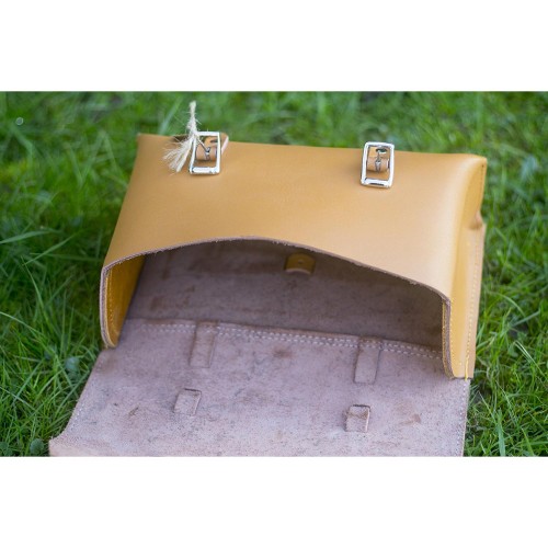 All the saddle bags are hand made and stitched. They can be used as a saddle or handlebar tool bag for your modern or traditional bicycle or to add that little extra something to a bike. Each tool bag is individual and although new and never used, they may have some marks as would be expected for a handmade item. They are all made of strong long lasting leather and would compliment a traditional leather saddle.