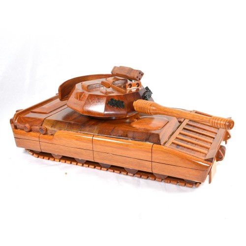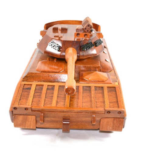 The Vintage M2/M3 Bradley Fighting Machine is Beautifully Replicated in Solid Mahogany with finely carved details including movable track, rotating gun turret and traversing gun barrel.
