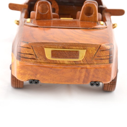 100% hand-made by expertised craftsman. It takes from 20 - 24 hours to made a completed product. Handcrafted from solid mahogany, consists of: rudimentary wood processing, carve, craft and cover of polyurethane (2 coats), which keeps these unique sculptures attractive for years. Movable wheels, finely detailed molding and seam details, make this model a great gift or conservation piece.
