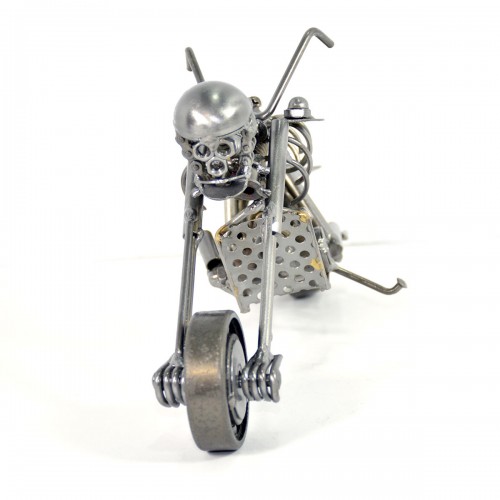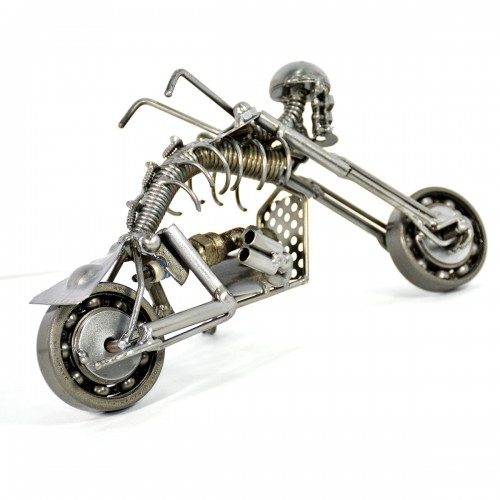 Metal Skeleton Motorcycle Sculpture is wonderfully replicated in this solid metal (recycled material) scale model Movable wheels, finely detailed molding and seam details, make this model a great gift or conservation piece.
