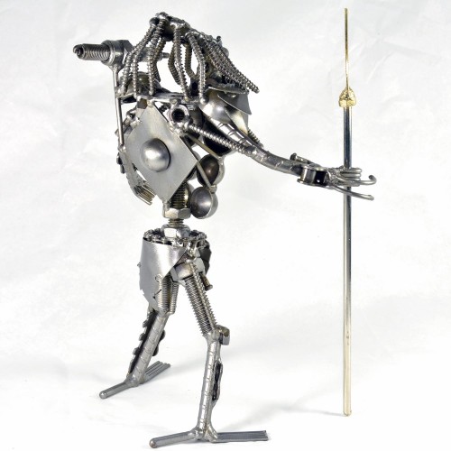 Predator with Spear Sculpture is made from solid metal. This model is 100% hand-made by expert craftsman. This sculpture is very solid and not easy to break because they are welded piece by piece by our professional welders. Moreover, this statue is protected by special coating ( clear lacquer ) which keeps these unique sculptures attractive for years.
