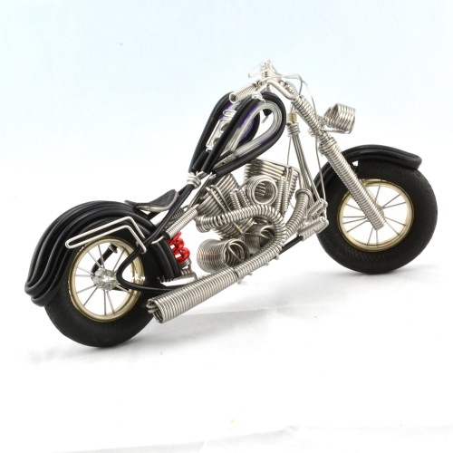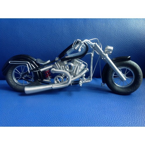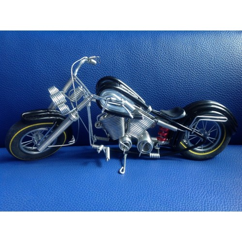 Handmade Harley Davidson 10 inches black motorcycle model made from aluminium coil wire with rubber tube and black rubber wheels. Great collection and cool gift idea!