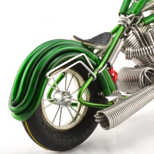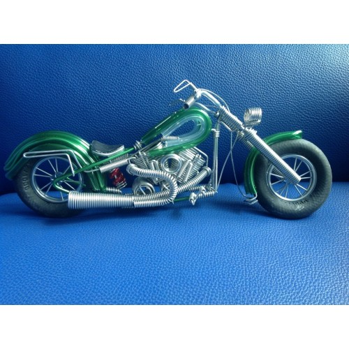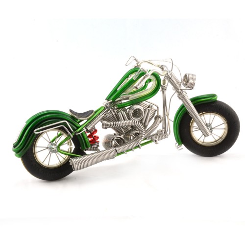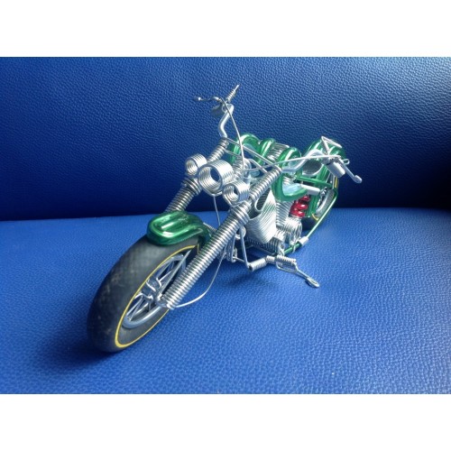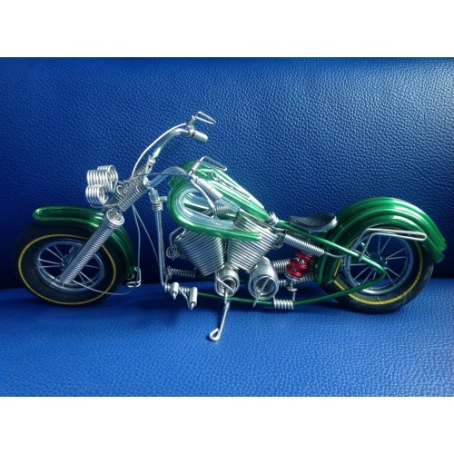 Handmade Harley Davidson 10 inches green motorcycle model made from aluminium coil wire with rubber tube and black rubber wheels. Great collection and cool gift idea!