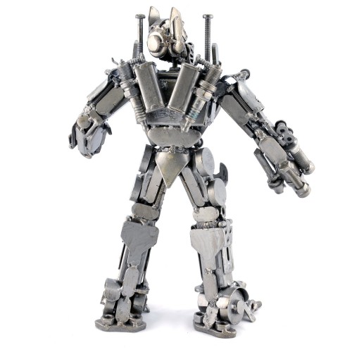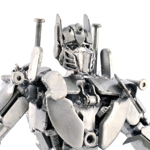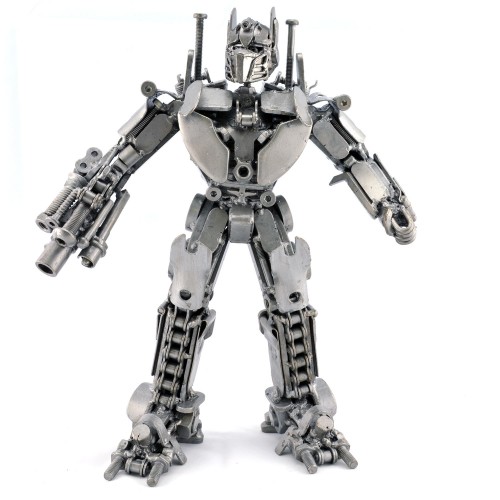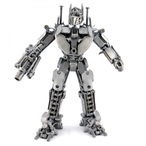 Optimus Prime metal model is made from scrap/recycled metal and auto parts. This model is 100% hand-made by expertised craftsman. This sculpture is very solid and not easy to break because they are welded piece by piece by our professional welders. Moreover , this statue is protected by special coating ( clear lacquer ) which keeps these unique sculptures attractive for years.