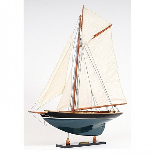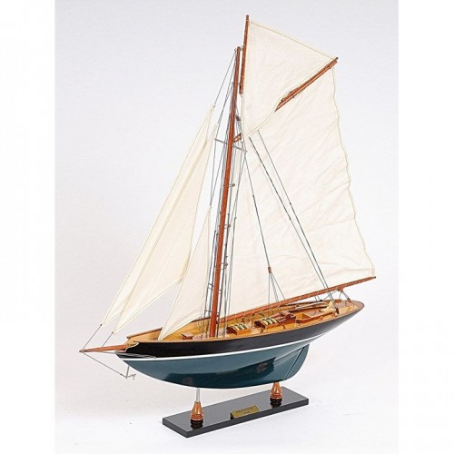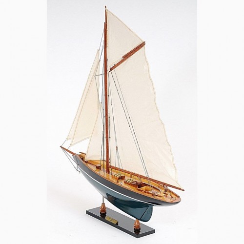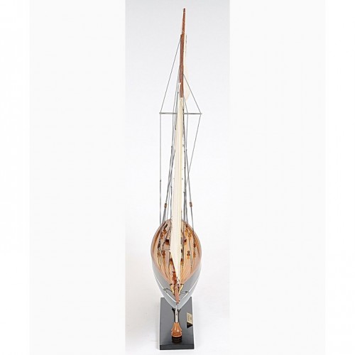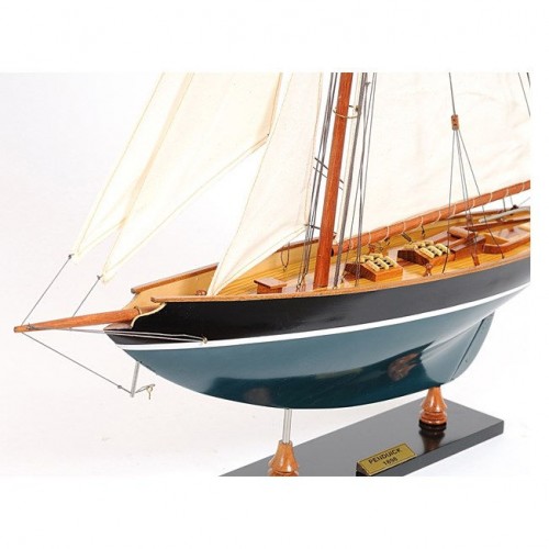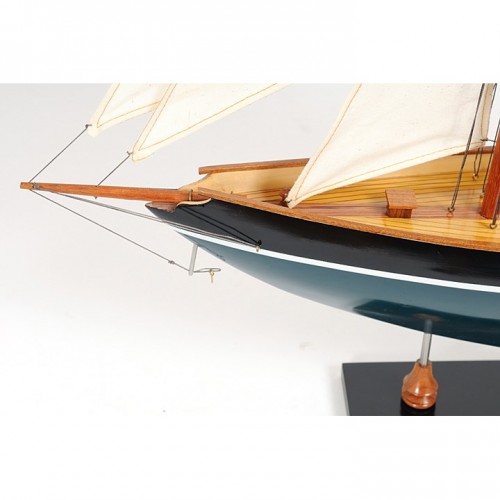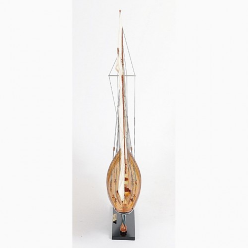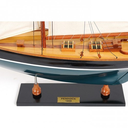 Built in 1898, the Pen Duick was one of the most beautiful sailing boats. Have it display beautifully as a home or office decor. Master craftsmen handcraft these highly detailed wood models from scratch using historical photographs, drawings and original plan. They are built to scale with high-grade wood such as: western red cedar, rosewood, and mahogany. They are 100% hand built individually using plank-on-frame construction method and are similar to the building of actual ships. Each model requires hundreds of hours to finish and must go through a demanding quality control process before leaving the workshop. This model hull is handcrafted from strips of wood using plank on frame construction method. It is then painted in green and black with white waterline. The deck is beautifully planked from many strips of wood. There are various details on the deck such as hatches, winches, and cabin. Located on the deck is a metal tilter near the companionway. The stitched sail and intricate rigging complete the definition of a true sailing boat. The model is secured tightly on a solid wood base with a brass nameplate. The mast and sail are folded down for easy packaging and shipping. Itíll make a perfect gift for home or office decorator, boat enthusiast, or passionate collector.