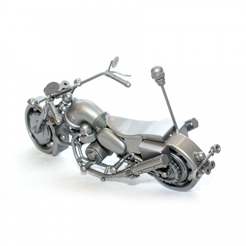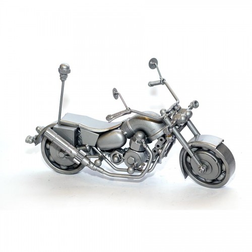 Police Motorcycle Metal Art Sculpture - 35cm, Silver (POL01) is wonderfully replicated in this solid metal (recycled material) scale model Movable wheels, finely detailed molding and seam details, make this model a great gift or conservation piece.