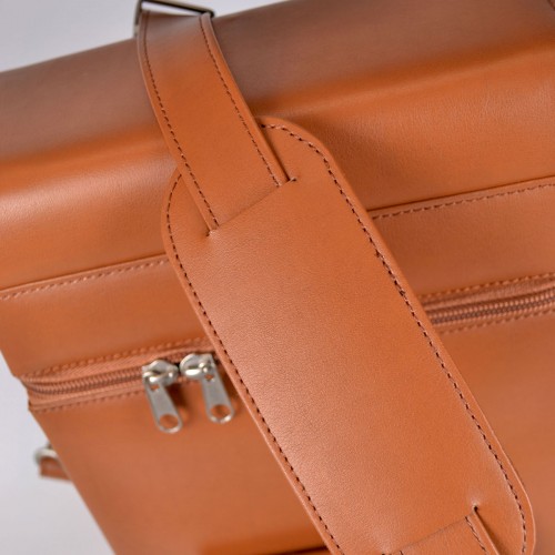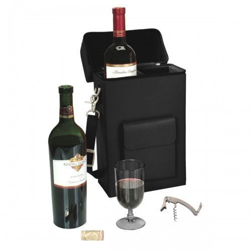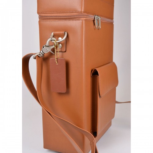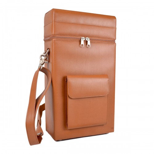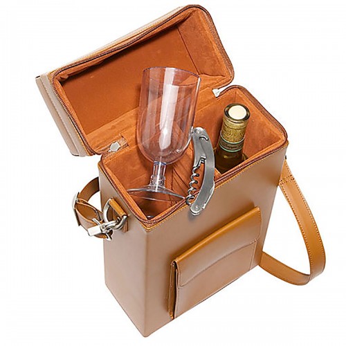 The essential case for the wine enthusiast. This Ultra Bonded Leather case has a plush, padded interior and features a removable/adjustable separator, and a stainless steel corkscrew and bottle opener. Complete with adjustable shoulder strap.