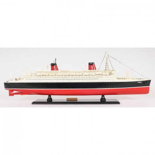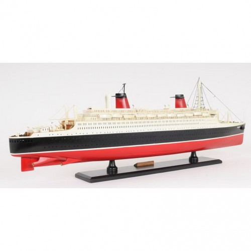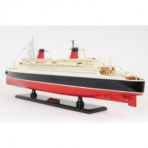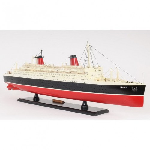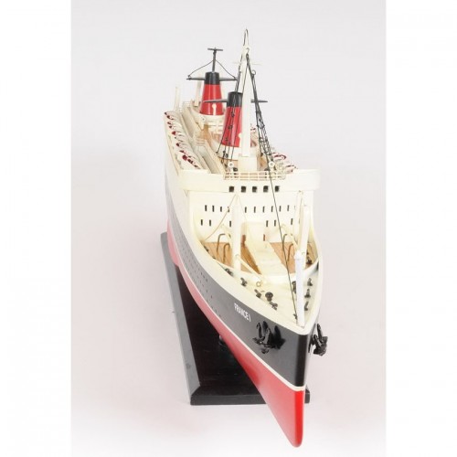The SS France was the longest ocean liner built in 1960. It is available as a FULLY ASSEMBLED model ready to be proudly display. Master craftsmen handcraft these highly detailed wood models from scratch using historical photographs, drawings and original plan. They are built to scale with high-grade wood such as: western red cedar, rosewood, and mahogany. They are 100% hand built individually using plank-on-frame construction method and are similar to the building of actual ships. Each model requires hundreds of hours to finish and must go through a demanding quality control process before leaving the workshop. The SS France eye capturing details include the following features: multiple wood decks, hundreds of open windows, lifeboats, rudders, metal anchors, wooden stairs, painted smoke stacks, and intricate rigging. The model is painted in red, white, and black to replicate the original ship colors. The model is secured tightly on a black solid wood base with a brass nameplate. Itíll make a perfect gift for home or office decorator, boat enthusiast, or passionate collector.