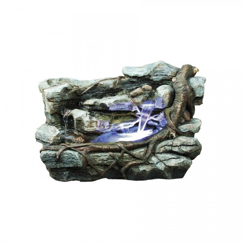 The impressive Staggered Rock Canyon garden fountain is sure to be the crowning statement in your garden or on your patio. Multiple cascading streams of water flow to create an in-home oasis and peaceful, meditative atmosphere. With the bottom pools lit by the included low-voltage LED lights, you can enjoy this fountain in the evening accompanied by the lyrical sound of water music. It can be placed indoors or out and constantly recycles water from a hidden reservoir. Cast in quality designer resin and hand-finished to replicate a natural stone waterfall, this investment in garden art features an integrated, UL-listed, indoor/outdoor pump.