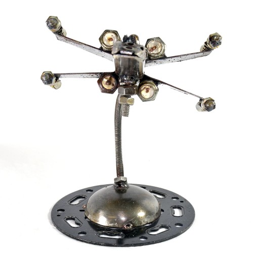 X-Wing looking Fighter Spaceship metal model / statue is made from scrap/recycled metal and auto parts. This model is 100% hand-made by expertised craftsman. This sculpture is very solid and not easy to break because they are welded piece by piece by our professional welders. Moreover , this statue is protected by special coating ( clear lacquer ) which keeps these unique sculptures attractive for years.