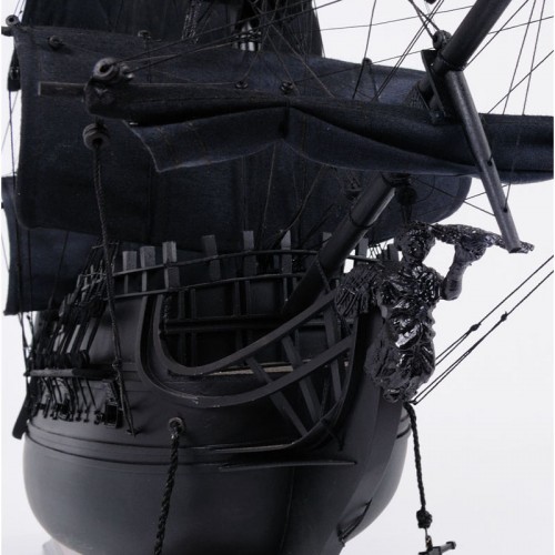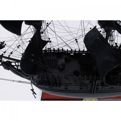 A great item for the Pirate of the Caribbean movie fans! This is an outstanding wood model of the Black Pearl. Master craftsmen using historical photographs, drawings or original plans meticulously handcraft these highly detailed wood models from scratch. They are built to scale with high-grade wood such as western red cedar, rosewood and mahogany. They are 100% hand built individually using plank-on-frame construction method and are similar to the building of actual ships. This infamous Black Pearl model is fully coated in dark black paint. It features plank on frame, 3 decks and one row of ferocious metal cannons on each side of the ship. The front bowsprit and three large masts are connected securely using advanced rigging and lines painstakingly knotted and fastened by hand. High above the foremast is a distinctive pirate flag with symbols of a skull and 2 blades crossing each other. Metal anchors and a wooden rudder are visible on the front and rear of the ship. On the deck, there are metal stationed cannons, wooden cabin, wooden stairways, wooden barrels and many other spectacular ornaments. There is also an exquisite detailed admiral’s quarter on the stern with beautiful handcrafted metal lanterns, uniquely designed portholes and other unique embellishments. This is an “Exclusive Edition” where the model has a unique serial number etched into the hull, which allows us to identify production date, a material used and all other production information of a model. This model comes standard with a solid wood base and brass nameplate. It’ll make a perfect gift for home or office decorator, boat enthusiast or passionate collector.