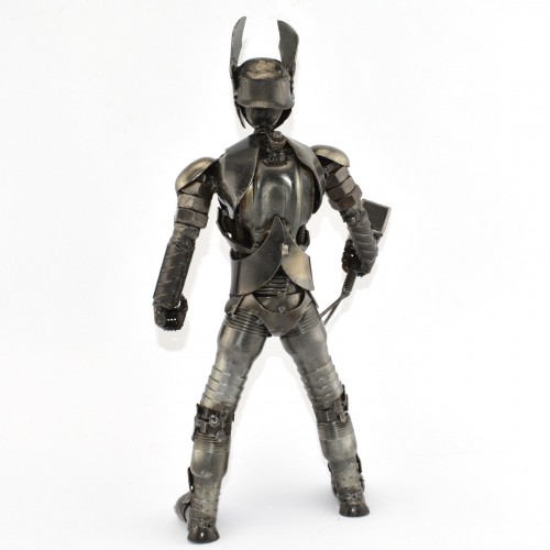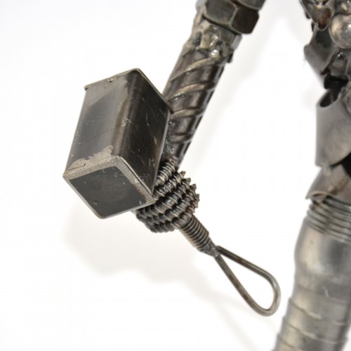 metal model with hammer is made from scrap/recycled metal and auto parts. This model is 100% hand-made by expertised craftsman. This sculpture is very solid and not easy to break because they are welded piece by piece by our professional Thai welders. Moreover , this statue is protected by special coating ( clear lacquer ) which keeps these unique sculptures attractive for years.