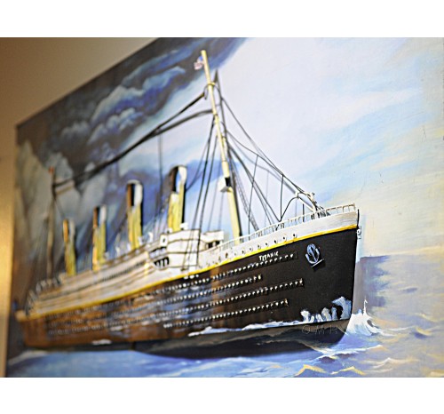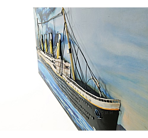 The realism on this 3D Titanic painting is incredible. It portrays the famous Titanic during its great voyage into the sea. Upon closer look, you will notice the ship is exposed out from the frame along with other details such as rigging, smoke stack, masts, and railings. It is completely handmade using metal and painted artistically to give it a mesmerizing look. Itíll make a beautiful wall decoration piece for your home or office!