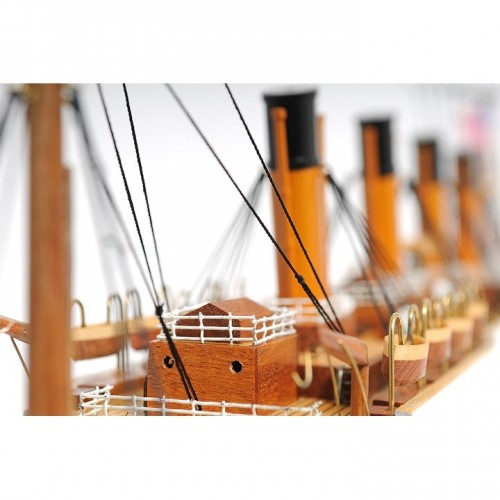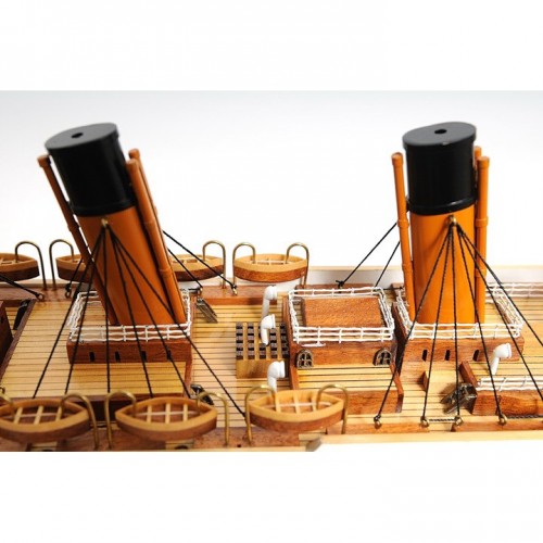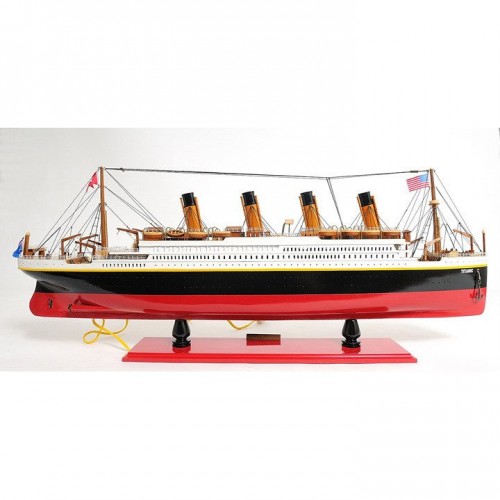 In May 1911, Titanic was launched, which was a heavily publicized spectacle. Unfortunately, at 11:40 pomp on the 14th April 1912, the greatest maritime disaster in history began. During that night of heroism, terror and tragedy, 705 lives were saved, 1502 lives were lost, and many legends were born. Master craftsmen handcraft these highly detailed wood models from scratch using historical photographs, drawings and original plan. They are built to scale with high-grade wood such as: western red cedar, rosewood, and mahogany. They are 100% hand built individually using plank-on-frame construction method and are similar to the building of actual ships. Each model requires hundreds of hours to finish and must go through a demanding quality control process before leaving the workshop. The model comes with beautiful LED lights both from inside and on top of the deck. It is painted in red, black, and white to represent the original colors of Titanic. You can find hundreds of intricate details on this model. All lifeboats are meticulously handcrafted from wood. All rigging are accurately built according to scale. The intricate pieces such as: the crane, anchors, stanchions, windows, ladders, steam pipes, and skylight really make this model a master piece. The model comes with an attached wood base with a brass nameplate. Itíll make a perfect gift for home or office decorator, boat enthusiast, or passionate collector.
