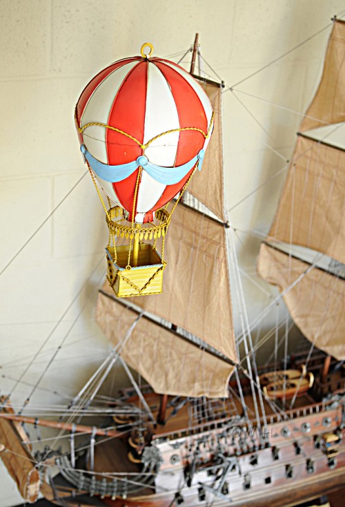 Have you ever wanted to go "up and away" and float away above the world? Hot air balloons that can be propelled through the air rather than simply drifting with the wind are known as thermal airships. There's terrific detail in this "Vintage" hot air balloon model. The balloon is made of metal so it will never deflate. It is handmade and painted in vintage hot air balloon color. Hang at any height using fishing line, or group several together at different heights for a larger decorating statement. It will make a perfect decoration piece for your home or office!