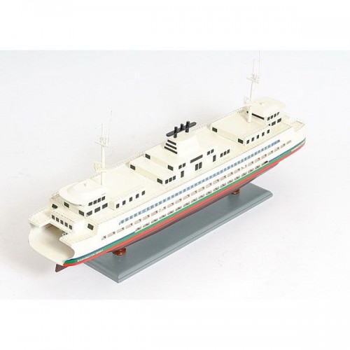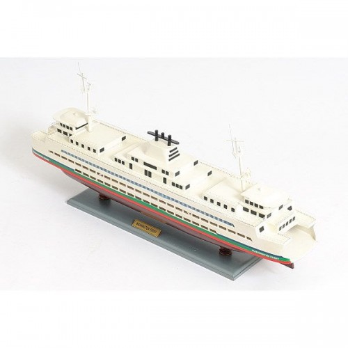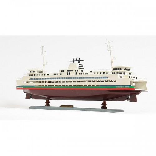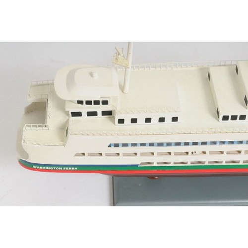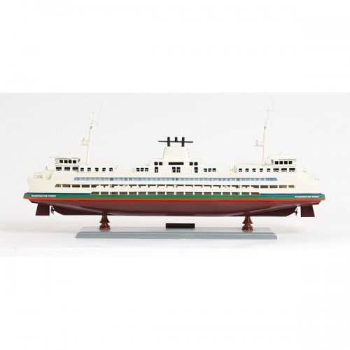 Our Washington Ferry model is truly one of a kind. It is made using the highest materials such as rosewood, mahogany, teak, ebony, and many more. It is carefully painted in original color: brown, red, green, teal, and white. The construction is absolutely incredible: see-through 3-D ship body from front to back and side to side, countless windows on three decks, first deckís window is tinted in blue, wooden stairs, wooden navigation towers, metal fences around the top deck, painted windows, ìSpokaneî imprinted in white on both side on the front and back of the ship, and along with many more exclusive ornaments. This beautiful model is rested on a painted wooden stand with two firm crafted wooden frames sustaining it. This model is completely hand built by skillful and creative master craftsmen; you will be amazed with its formation and how astonishing it looks. Months of research goes into the planning of these model boats. Original plans and pictures are used for their design and realism. This wooden model boat is shipped fully-assembled and ready to be displayed.