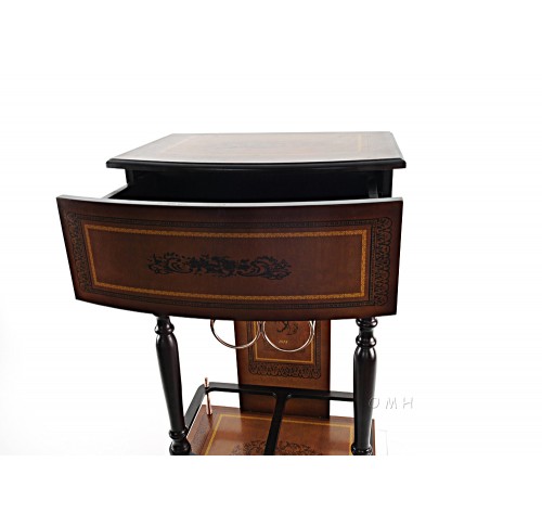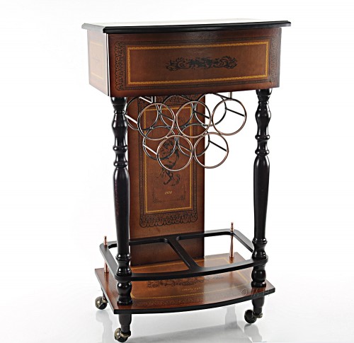 Add a touch of elegance to your bar area or dining room this stylish wine cabinet. This nautical vintage styled, elegant, wine cabinet fits 5 bottles of wine on the bottom rack and you can further store wine glasses on the sleek storage cabinet drawer on top, equipped with four legs and wheels for home, office, or wherever you would like to receive guests in a classy manner. Whether it is open or closed this cabinet is a highlight to any room. Features: Overall dimension: 20" W x 14" D x 36" H Vintage finish 4 casters for easy relocation Holds up to 5 bottles of wine Wood and MDF construction Assembly required