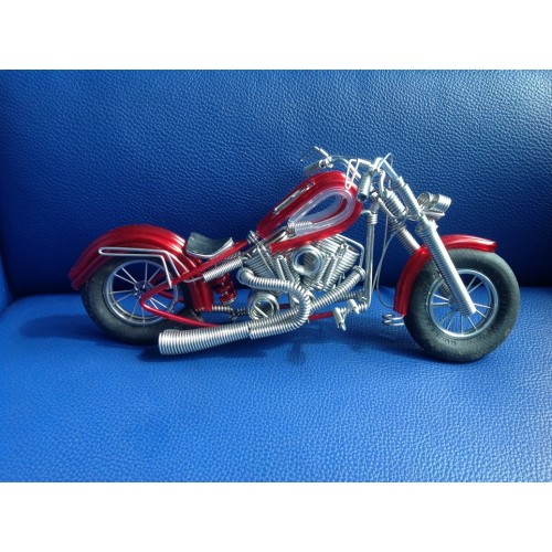 Handmade Harley Davidson motorcycle model made from aluminium coil wire with rubber tube and black rubber wheels. Great collection and cool gift idea!