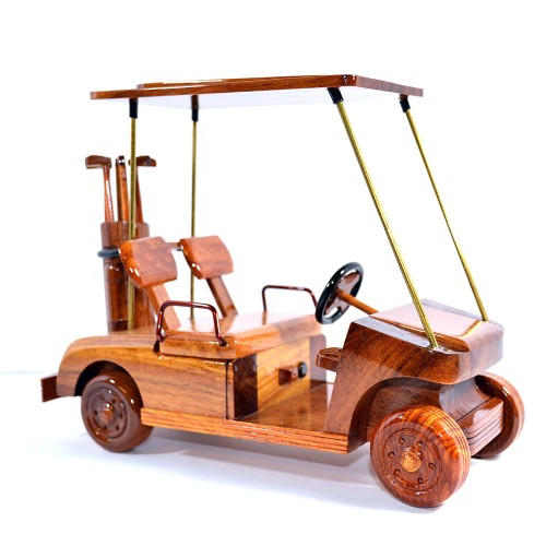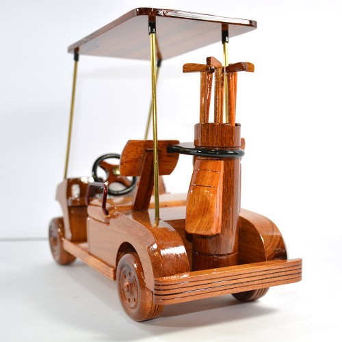 This is the high quality wooden mahogany GOLF CART scale model, 100% hand-made by expertise craftsman. It takes from 20 - 24 hours to make a completed product. Handcrafted from solid mahogany, consists of: rudimentary wood processing, carve, craft and cover of polyurethane (2 coats), which keeps these unique sculptures attractive for years. Movable wheels, finely detailed molding and seam details, make this model a great gift or conservation piece.