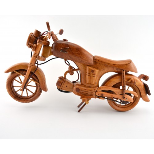 This piece of model wood art required a lot of workmanship since it was hand-crafted from many different pieces of wood to make a beautiful model motorcycle. An interesting feature of this item is that it was hand-crafted in great details, even the wheels, engine, seats, lights, handles,... were hand cut & crafted with a lot of details.....you gotta see this item in person to appreciate the beautiful workmanship and great details put in this piece.